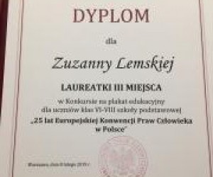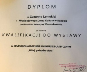 Gratulujemy osiągnięć naszej zdolnej uczennicy Pracowni Plastyki Zuzannie Lemskiej i jej opiekunce p.Katarzynie Wieczorkowskiej. Życzymy kolejnych laurów i sukcesów w dalszej artystycznej twórczości.